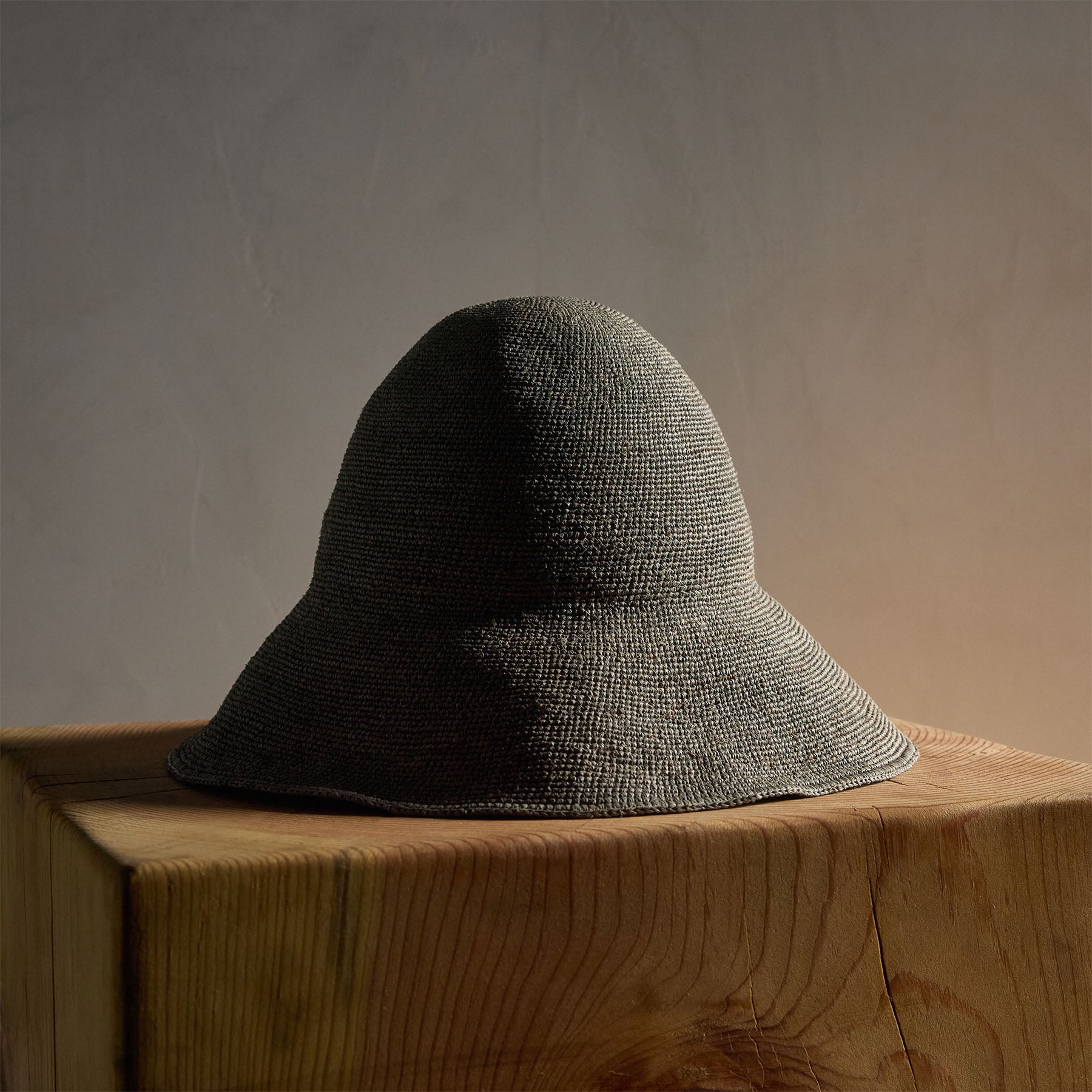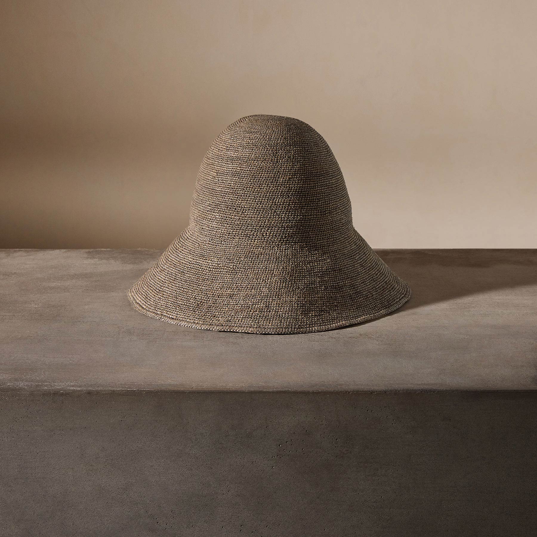 Janessa Leone Teagan is made from straw harvested from the frond leaf in Madagascar and hand-crocheted into a light, durable fiber. Is malleable shape make it ideal for packing with you on any journey. This raffia bucket hat provides structural design capability in the brim, allowing for any shape alterations