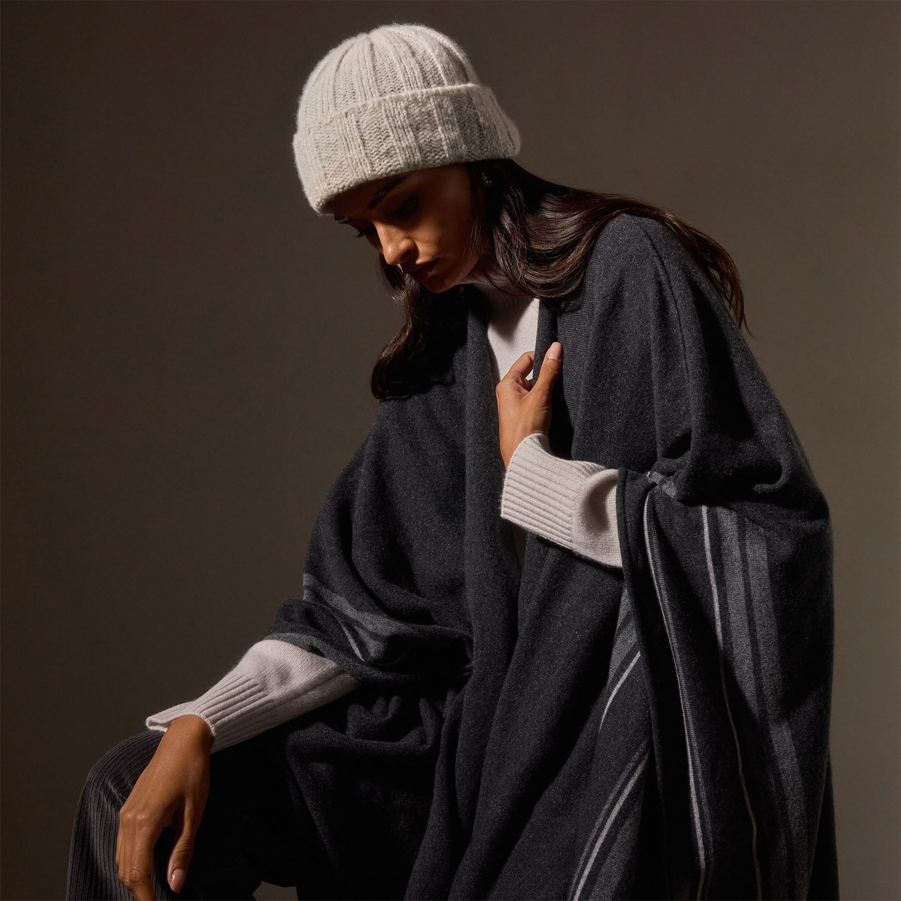 Our Textured Cashmere Beanie is made in a luxe and lightweight cashmere which is knitted with multiple ends creating a heavier, more luxurious knit. Style details include ribbing and a self start hem.