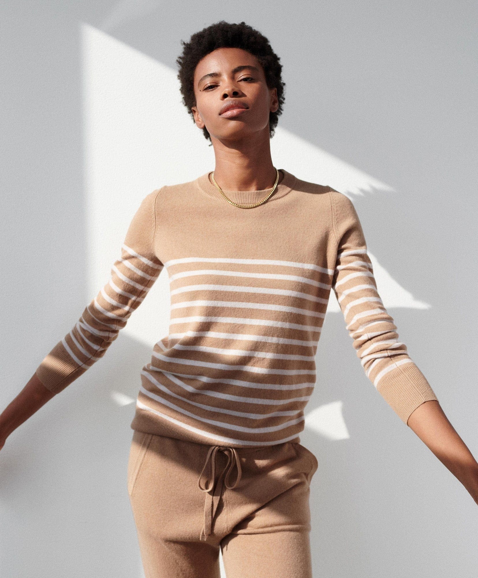 You can never go wrong with a striped crew neck—especially with one as perfect as this. Crafted in a dreamy cashmere blend with feminine details and a fit to flatter, we’re betting on this one as a forever fall fave. Try with our .