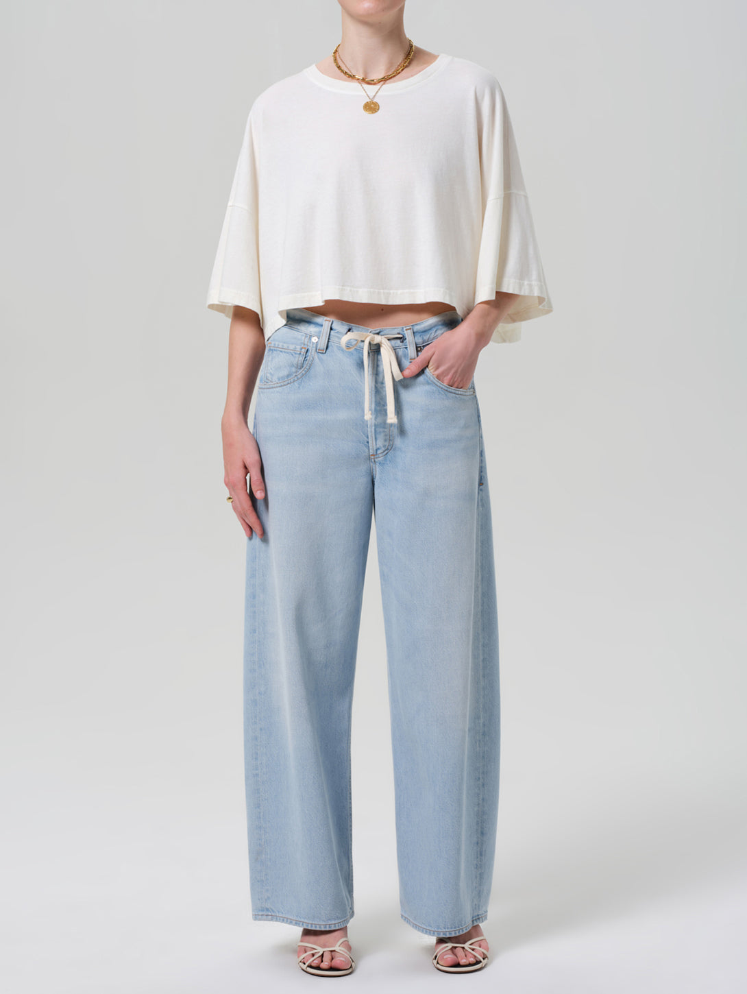 The Brynn Drawstring Trouser is the unofficial beach jean—relaxed, effortless, and made for sun-soaked days. Crafted from a regenerative cotton blend with a beautiful drape, it features a comfortable drawstring waist and an easy, laid-back fit. Pair it with tonal separates or a breezy tank for a look that moves seamlessly from the sand to the street.