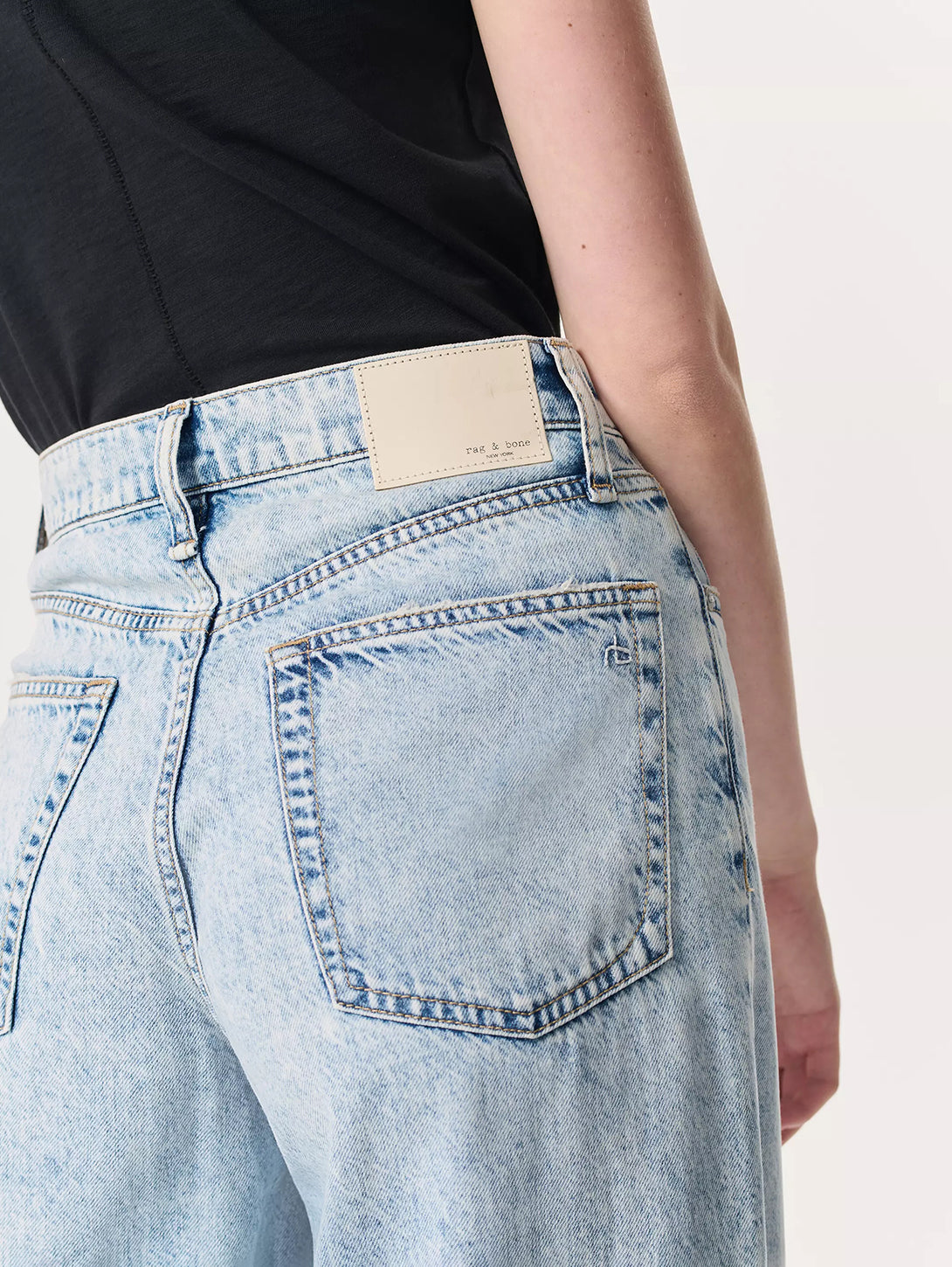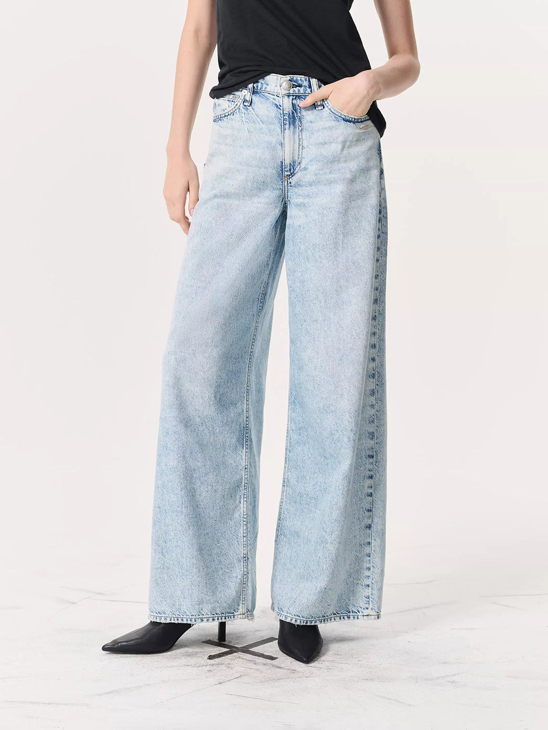 The Sofie. High-rise jeans that are rag & bone office favorites, with wide, full legs. Crafted from our Featherweight denim that's supremely soft and super light, with an easy drape. In Bellport, a light indigo with a slight acid wash.