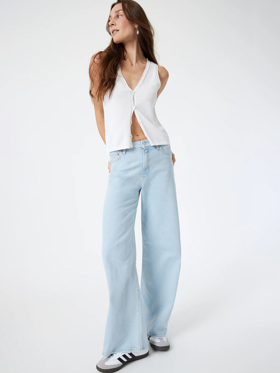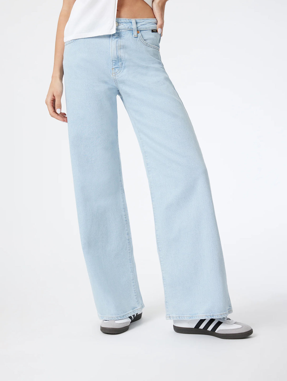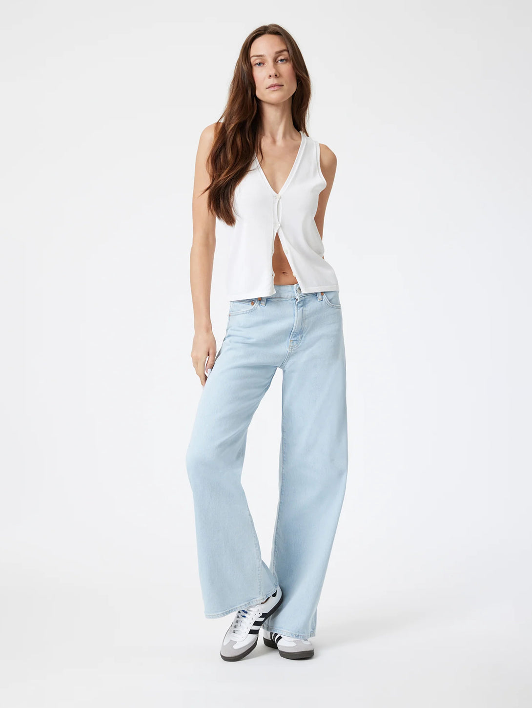 A mid-weight denim made with Tencel™, these trendy wide leg jeans have a structured, classic denim feel, while a versatile bleach wash gives this style a trendy ‘90s flair.