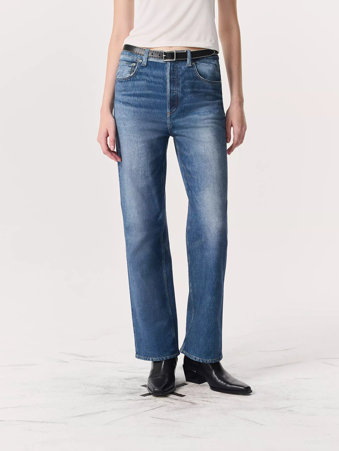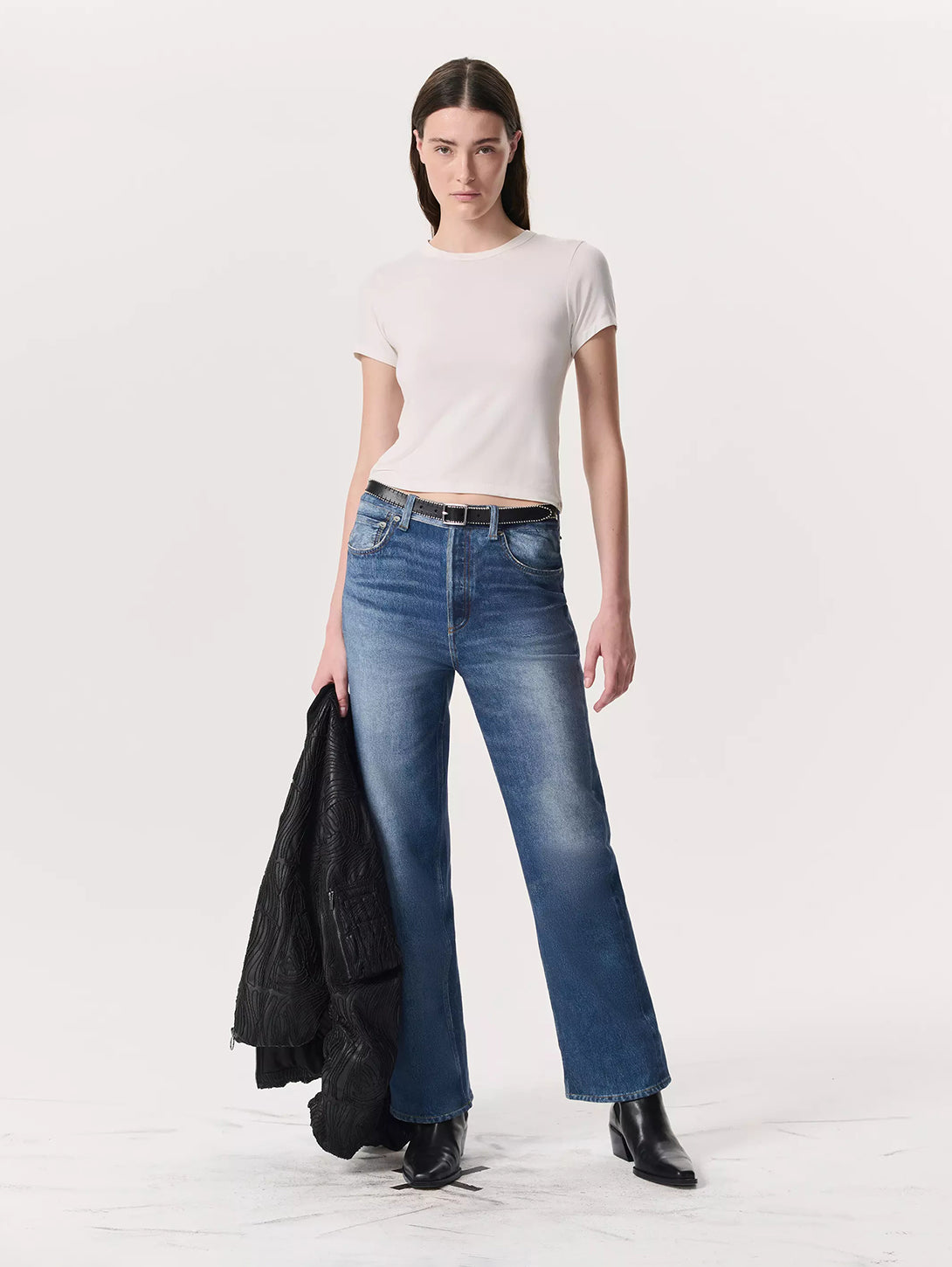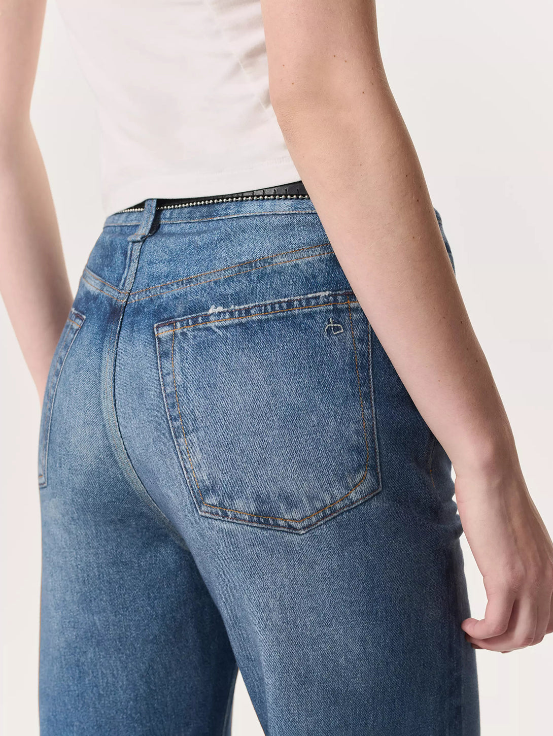Miramar, our revolutionary printing technique, makes any material look like denim. These Shea pants are individually cut and sewn from cotton terry cloth that's ultra-soft on the inside and printed on the outside to look like your favorite jeans. Featuring relaxed, straight legs that hit at the ankle, plus functional belt loops, front scoop pockets, and a zip fly with a button closure, the high-rise style further achieves its comfortable fit and feel with the other pockets and denim details digitally printed on the fabric.