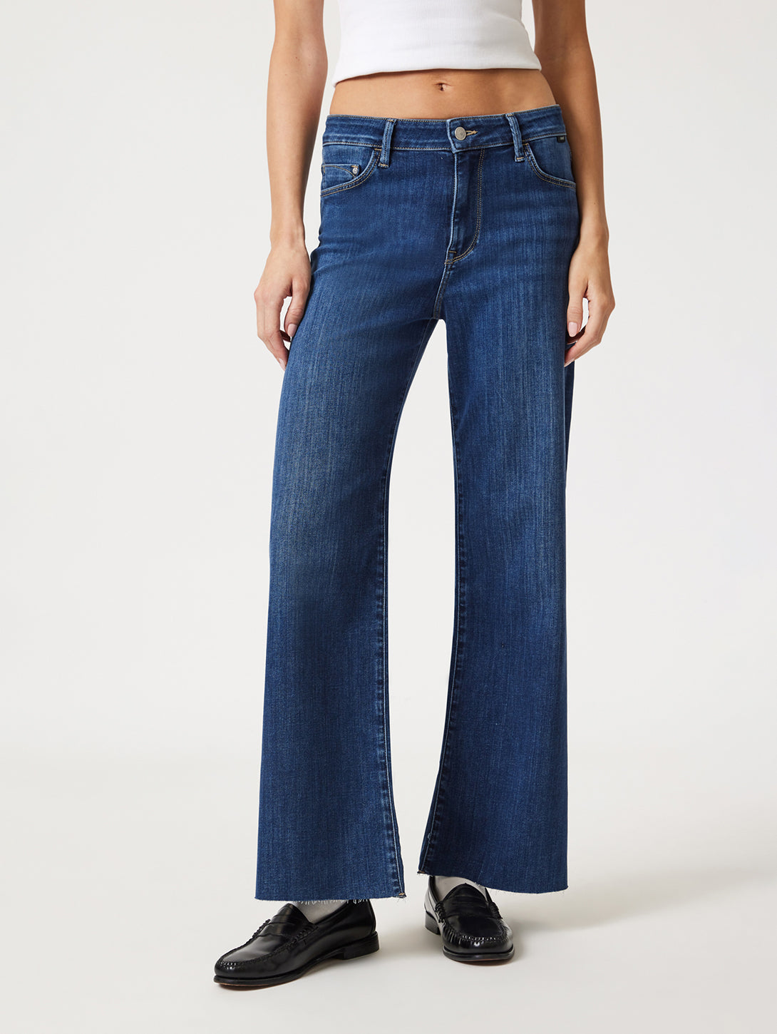 A high rise and wide leg style that fits slim through the hip and thigh, Paloma creates an ultra-flattering silhouette without ever feeling too tight. A raw hem and cropped fit complete the chic look.