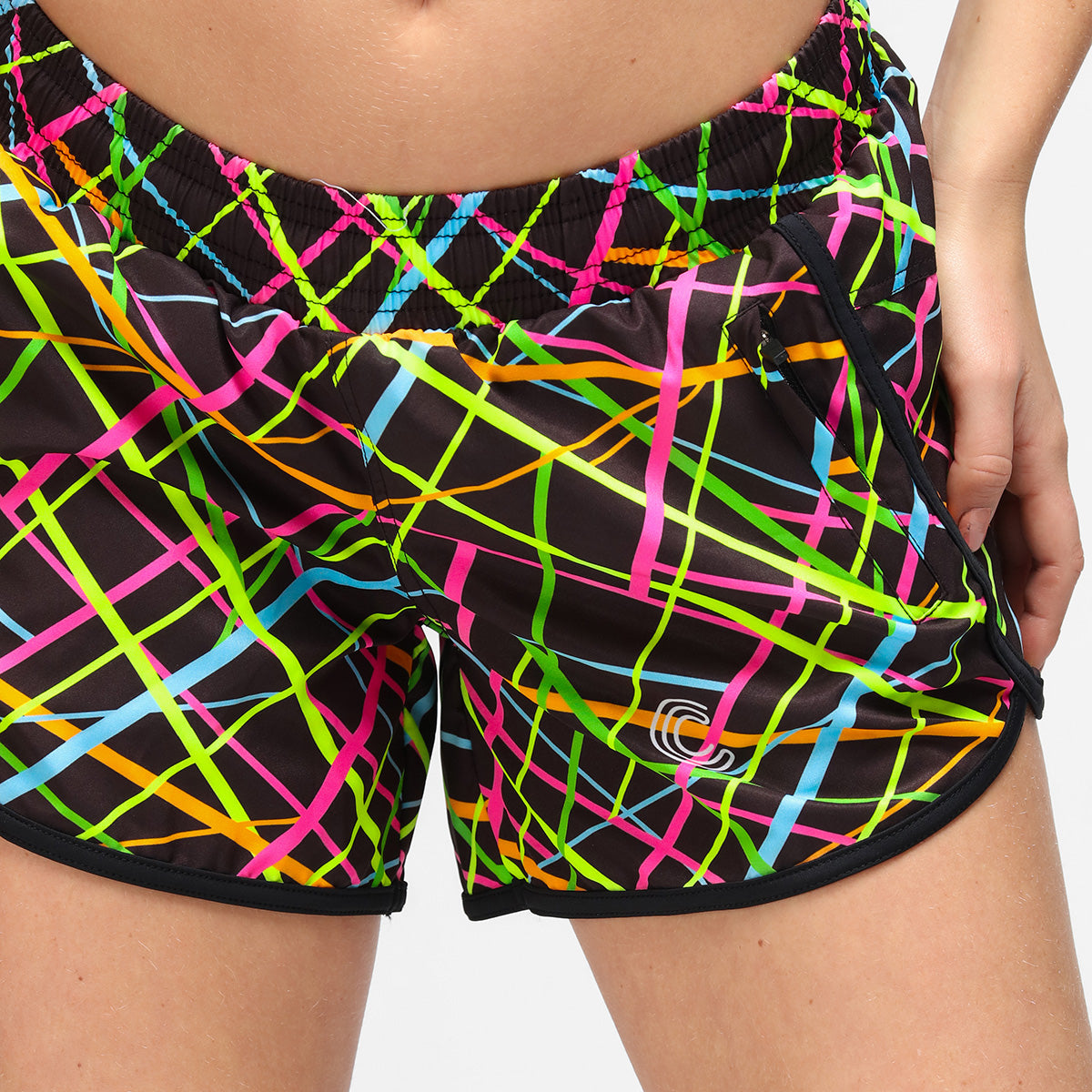 Tone to the tunes in striking neon shorts that light up the dance floor