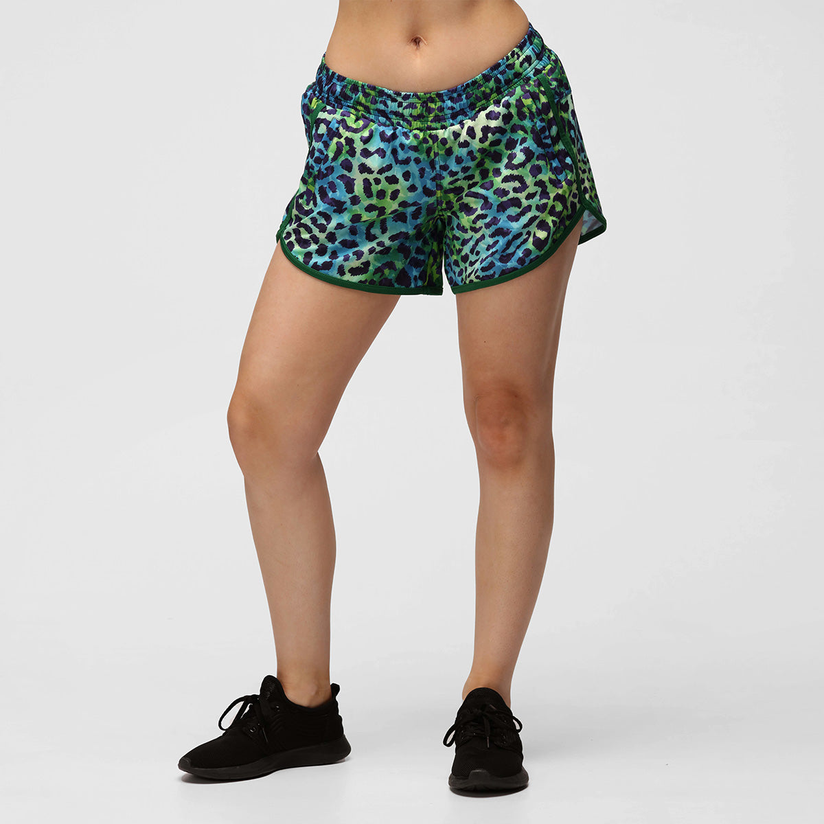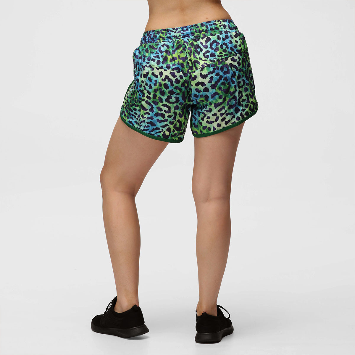 Retro Elegance: The Earth Cat Retro Loose Fit Workout Shorts showcase a captivating blue and green animal print that brings vintage aesthetics to the forefront of your active wardrobe.