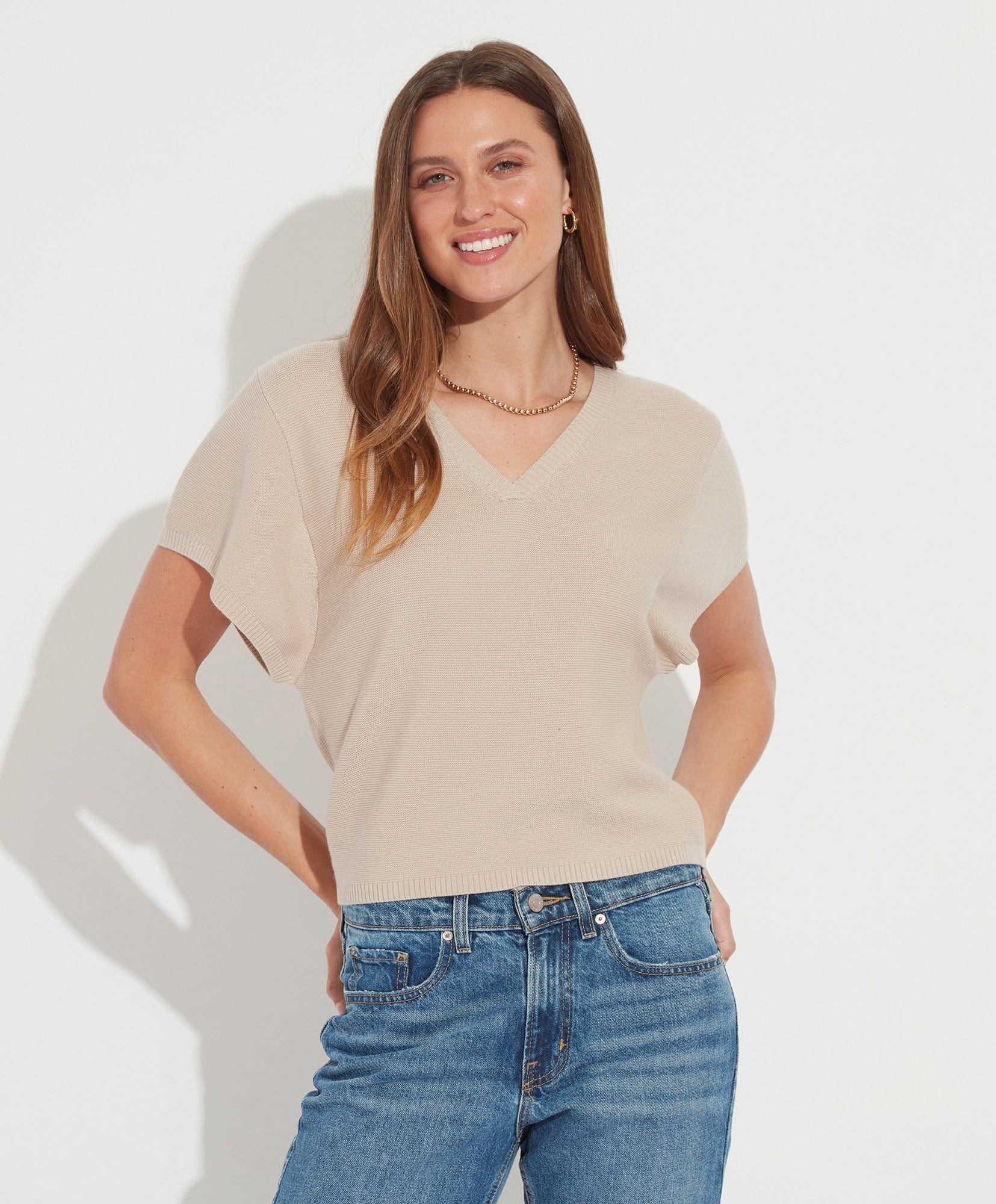 When the situation calls for something relaxed but still ‘dressed’ you won’t have to think twice. The softly draped cap sleeve is just a pinch feminine and full-on flattering. Covers enough to be suitable for the office, but fun enough for a dinner date. Knit in our fine gauge, it’s perfect for warmer months.