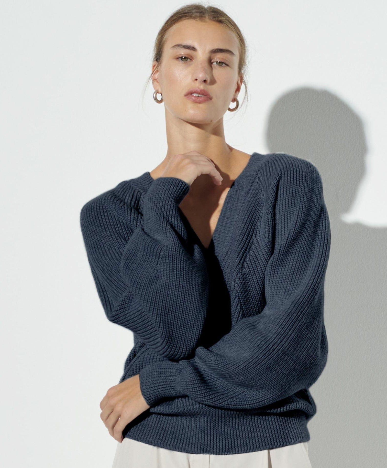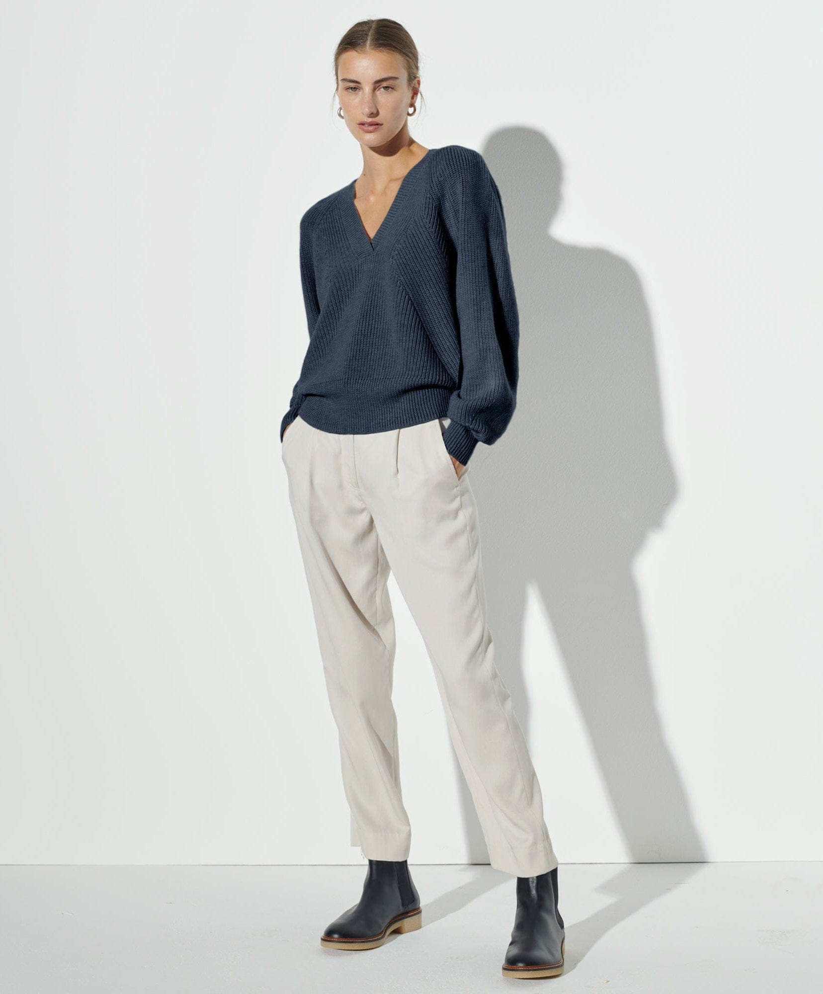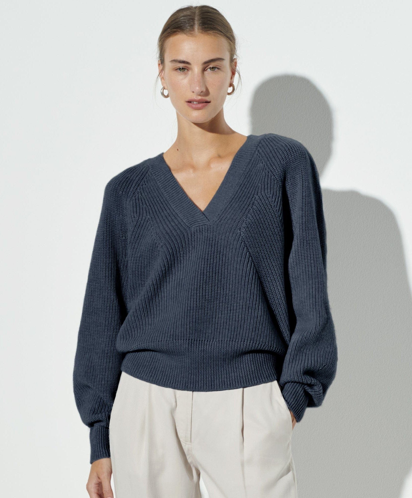 No matter how often you wear it, this one always looks fresh. We’ve taken everything you love about a classic ribbed sweater and updated all the details—a comfy-cool V-neck, balloon sleeves that puddle perfectly, and contrast ribbing galore.